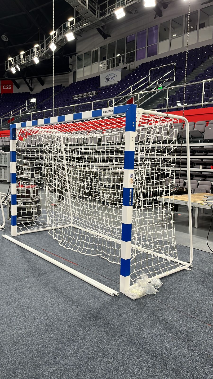 Компания «Спорт Лайн» произвела сборку и монтаж на объекте игрового спортивного оборудования компании Sport System (Италия): мобильных баскетбольных стоек с выносом щита 3,25 метра, сертифицированных FIBA, ворот для гандбола.